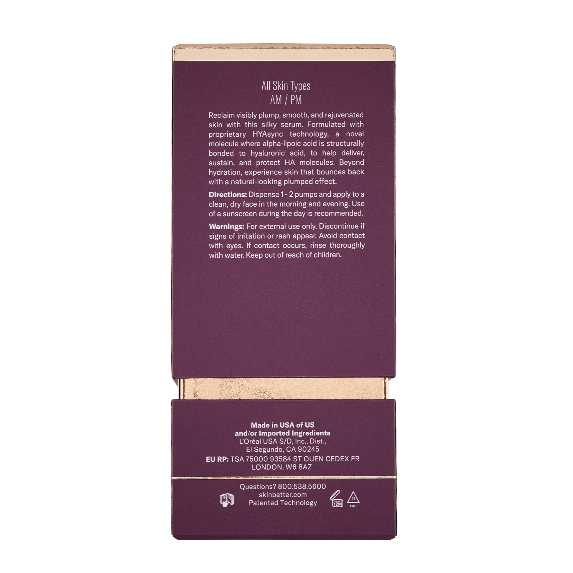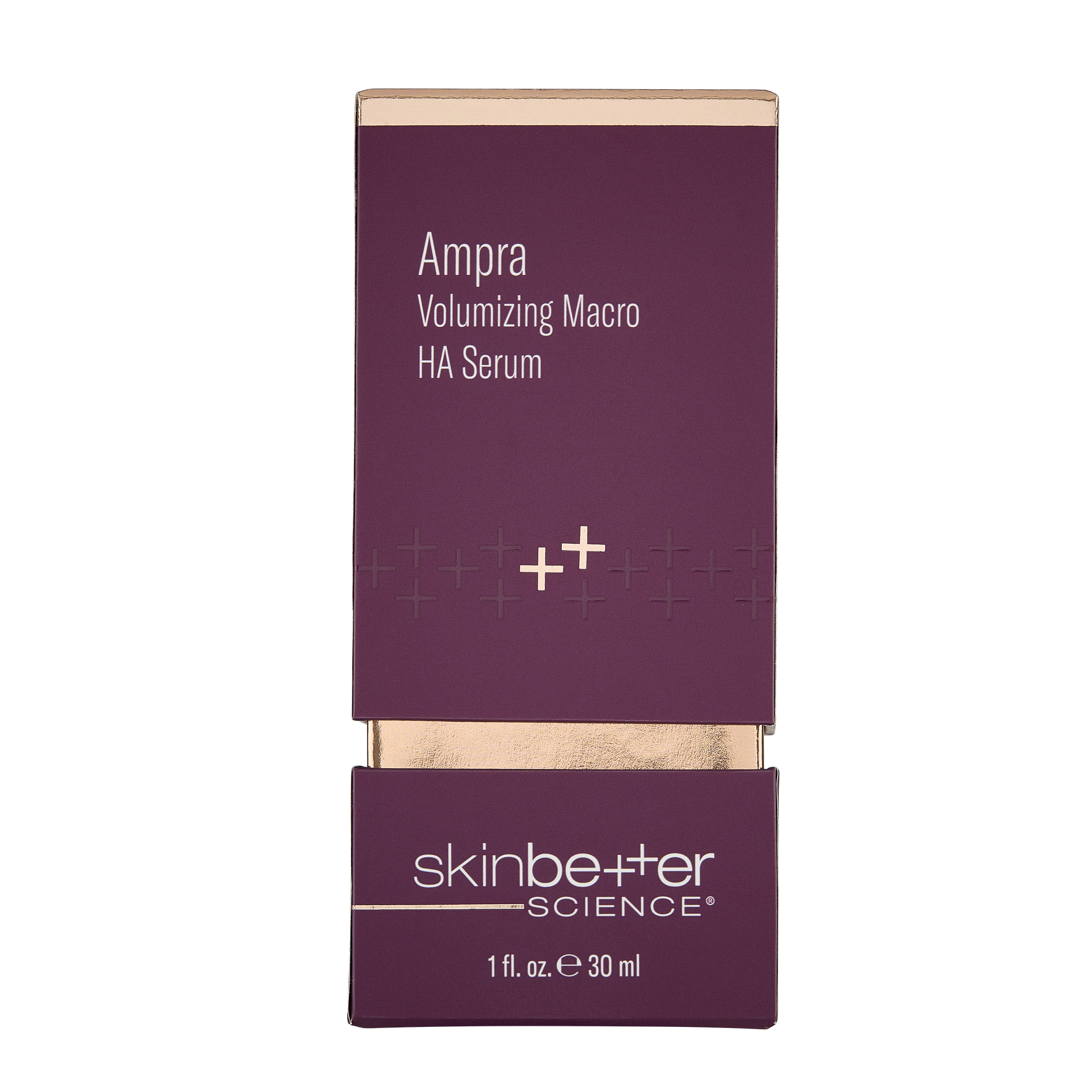 Plump, contour, and lift. Ampra Volumizing Macro HA Serum, powered by proprietary HYAsync technology, delivers hyaluronic acid conjugated with alpha-lipoic acid to restore the appearance of fullness, redefine contours, and improve skin texture and radiance. This innovative hyaluronic acid serum helps deliver HA and protect it from breakdown, sustaining its presence and activity. With continued use, the skin appears plumper, smoother, and more radiant, reducing the appearance of fine lines and visibly redefining contours.
