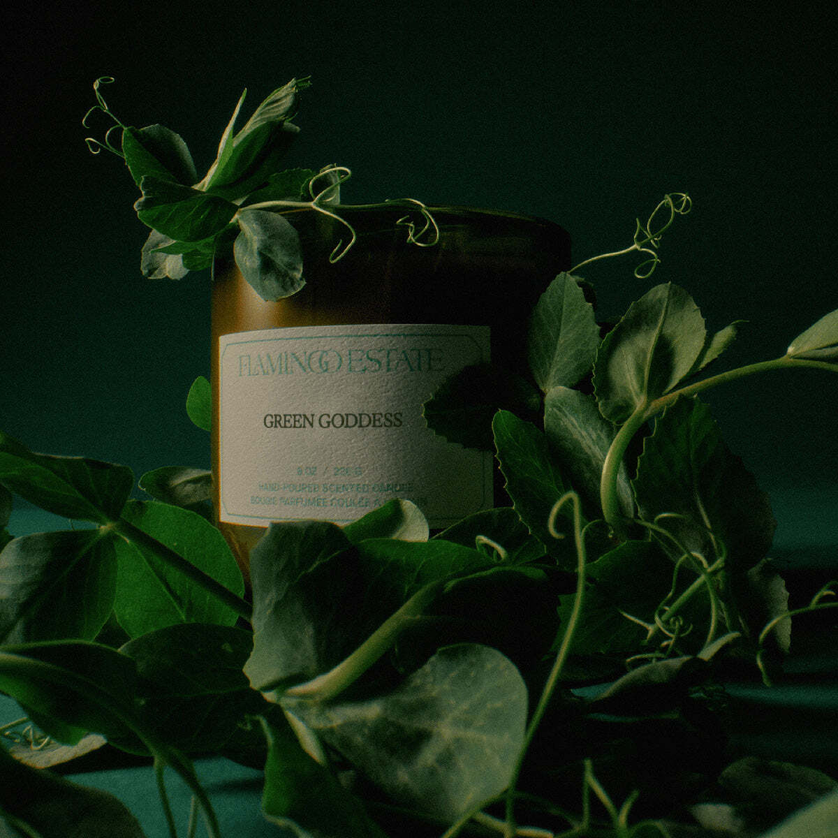 Green Goddess: Green Goddess is a fecund celebration of all that bursts with green. It mingles freshly-picked Basil, sharp Mint, bright pea Tendrils, and warm Golden Ginger — conjuring those fleeting moments at golden hour when everything is lush and the garden feels alive.