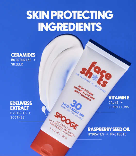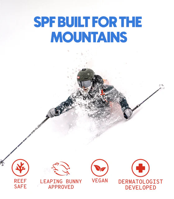 The mountain SPF for skiers, snowboarders, and alpine thrill-seekers that stands up to snow, sweat, and wind + protects and soothes from first chair to last call. Water-resistant. Tested on skiers, not animals.