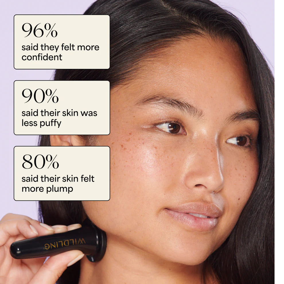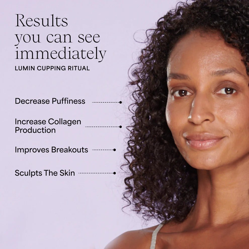Two facial cups clarify, detoxify, de-puff, and sculpt the face and neck.