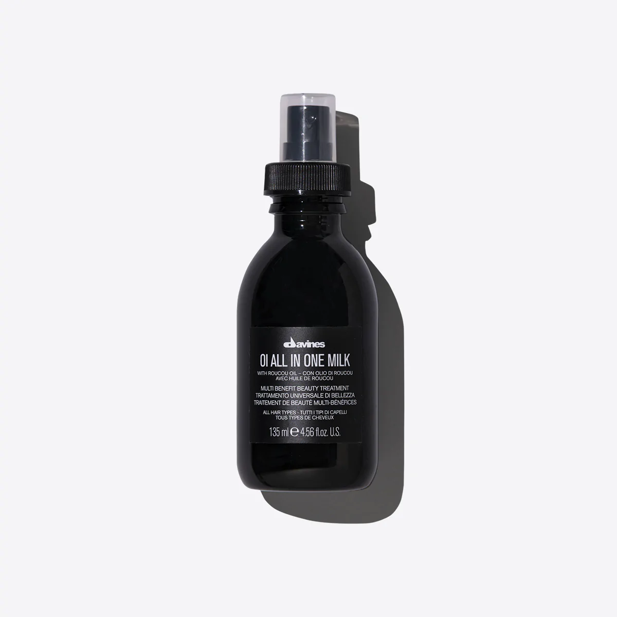 Lightweight OI All In One Milk is a multi-function leave-in spray treatment that softens, detangles, controls frizz and protects the hair from heat.