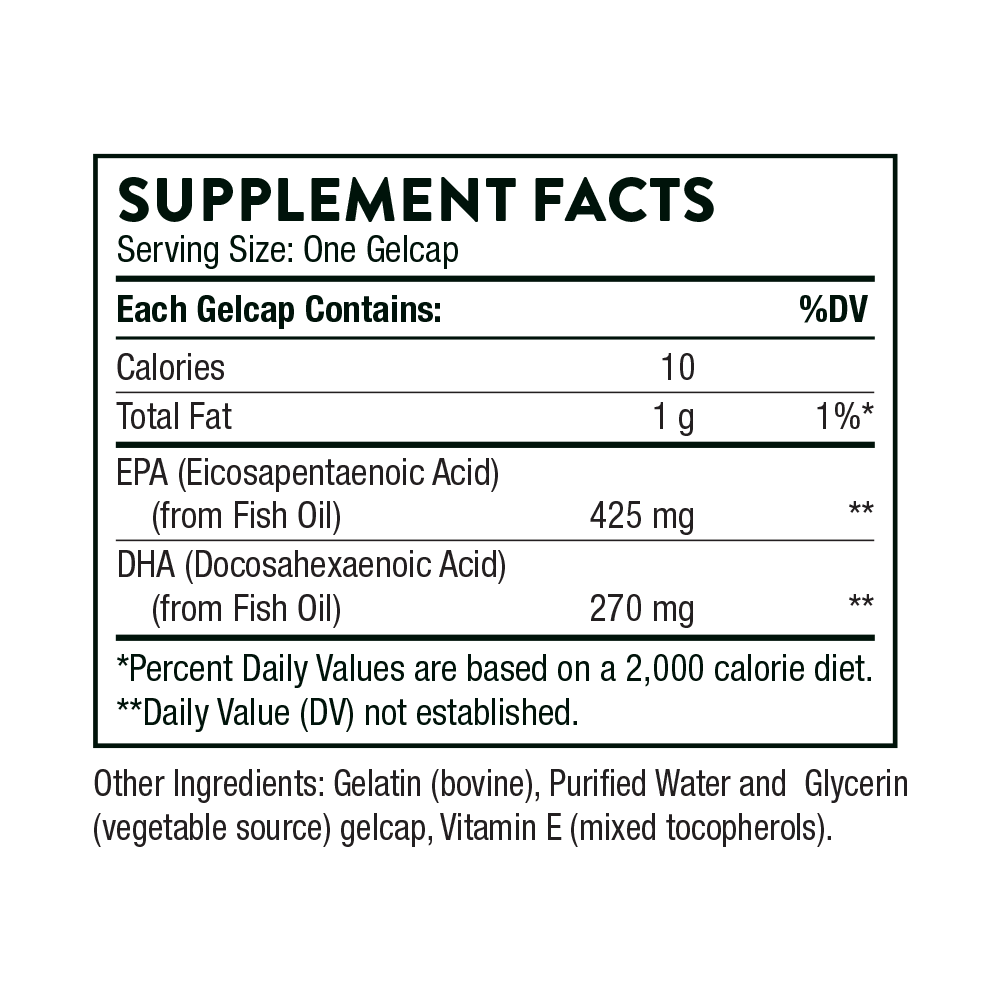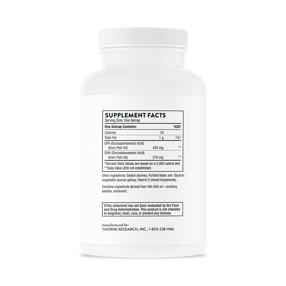 Thorne’s Super EPA provides the highest quality, purest fish oil available from sustainably-sourced, cold-water fish. Super EPA contains two vital omega-3 fatty acids – EPA and DHA – important throughout adulthood, as well as during periods of increased brain growth that characterize prenatal and postnatal development.*