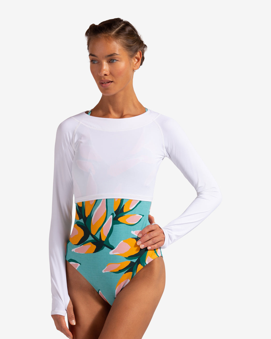 Reach for the BloqUV UPF crop shirt when you want sun protection for your arms and shoulders without adding bulk. This midriff top was designed to be worn over your favorite tank, sun dress or swimsuit to provide superior SPF sun protection while keeping cool. Perfect for activities on and off the water: running, biking, swimming, paddle boarding, fishing, tennis, golf and sight-seeing. Enjoy your multi-use capri sun shirt for any activity.
